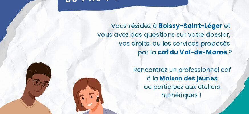 Vous résidez à Boissy et vous avez des questions sur votre dossier, vos droits ou les services proposés par la caf du Val-de-Marne ? Rencontrez un professionnel caf à la Maison des jeunes ou participez aux ateliers numériques !