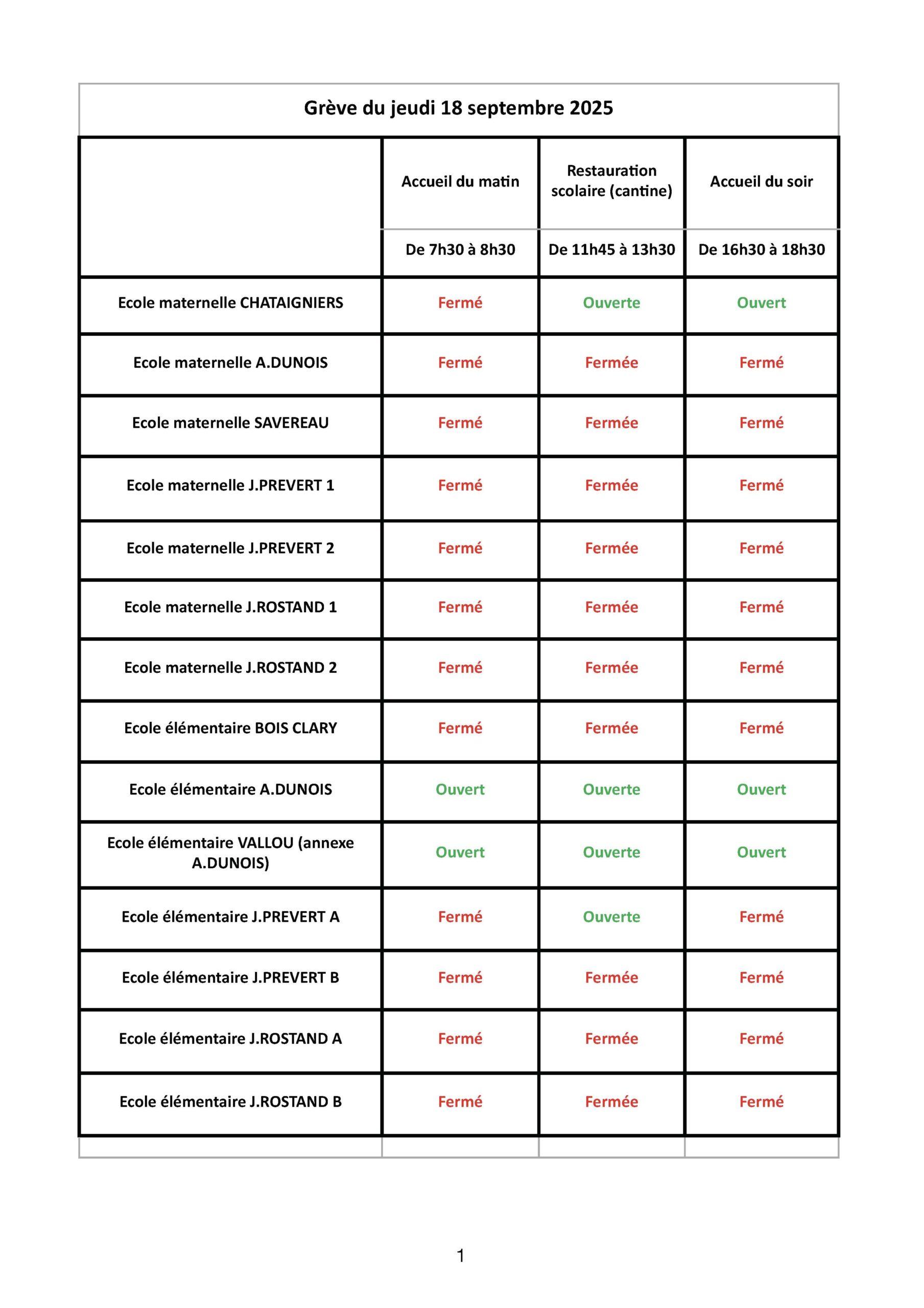 En raison du mouvement social du jeudi 18 septembre, un certain nombre d’accueils périscolaires seront fermés.